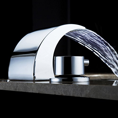 -. Title : Greenspring Deck Mount Double Handles Led Waterfall Contemporary Widespread Bathroom Sink Faucet Chrome Finish Led Water Flow Powered Temperature Sensitive Shower Faucets