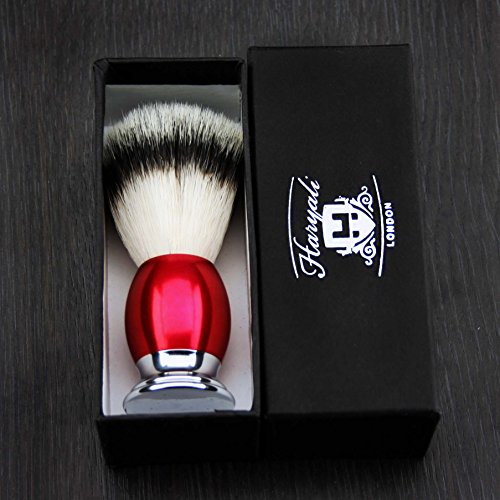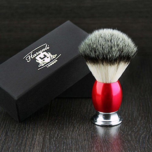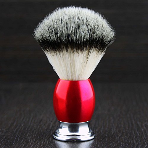 Round Shiny Red & Metal Base Shaving Brush with 100% Syntactic Sliver Tip Hair