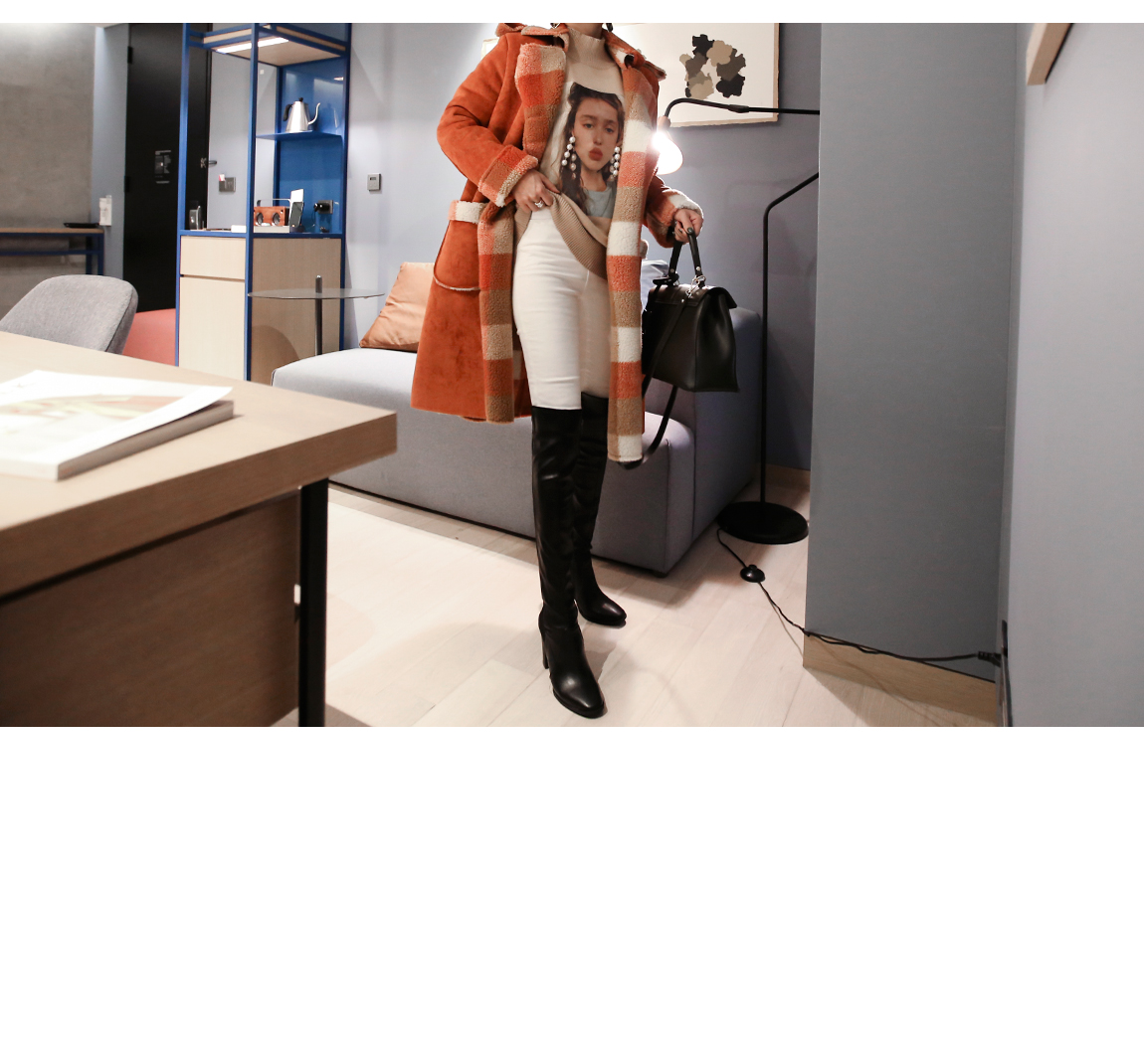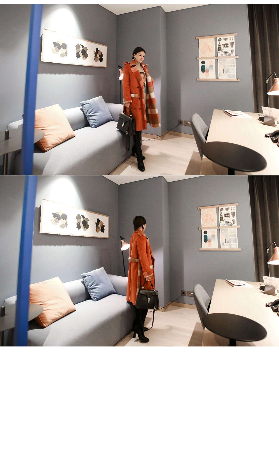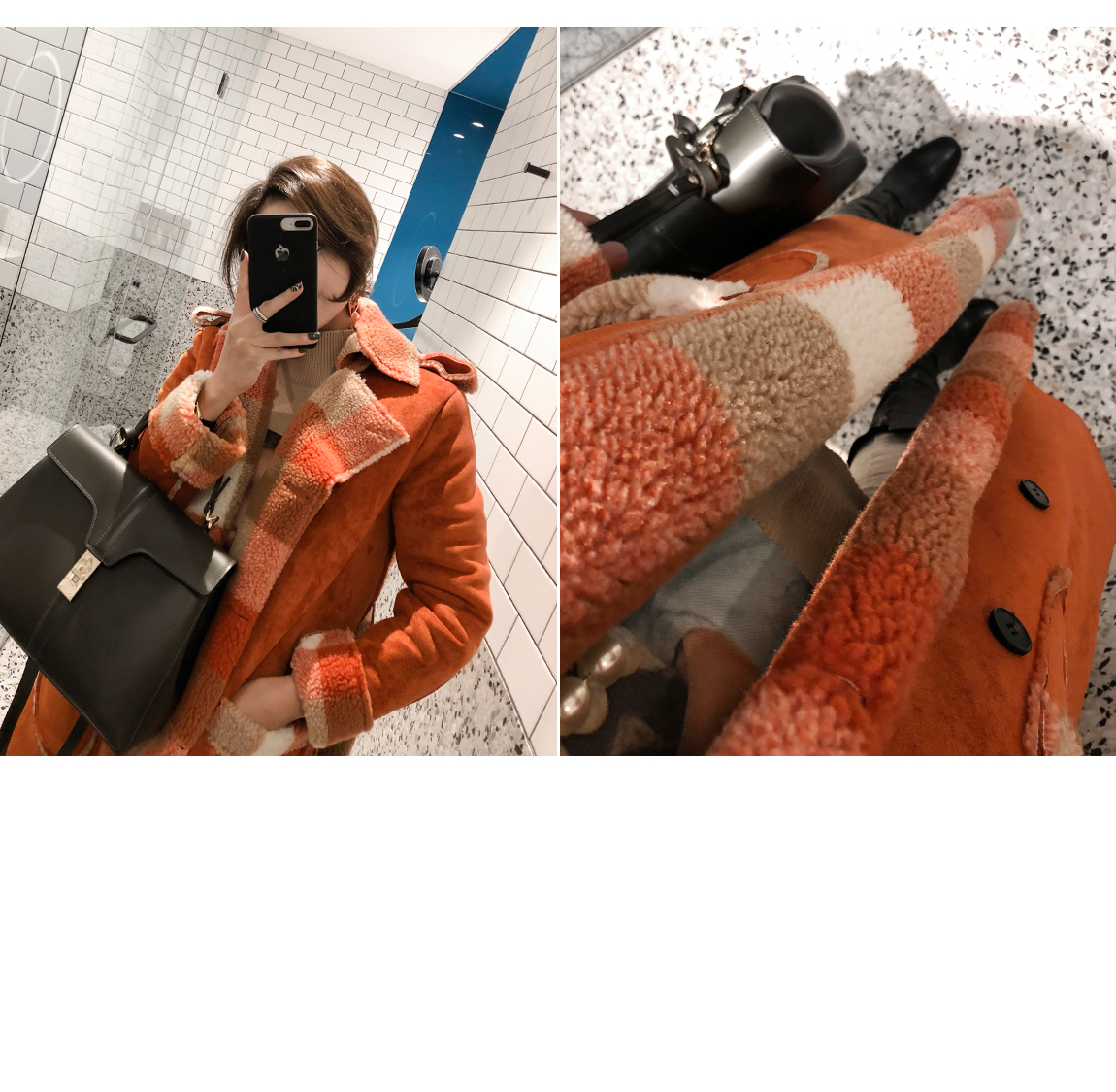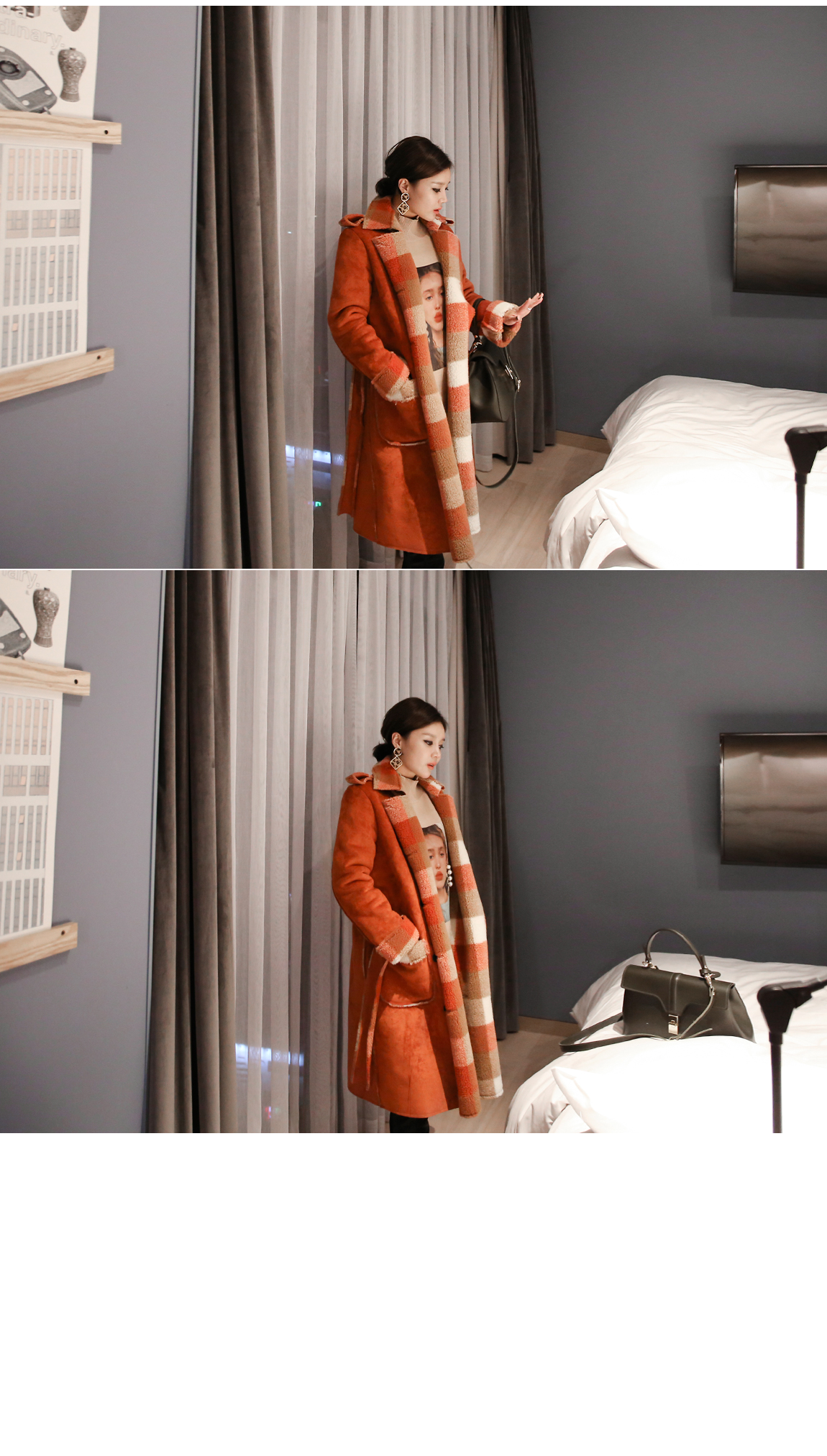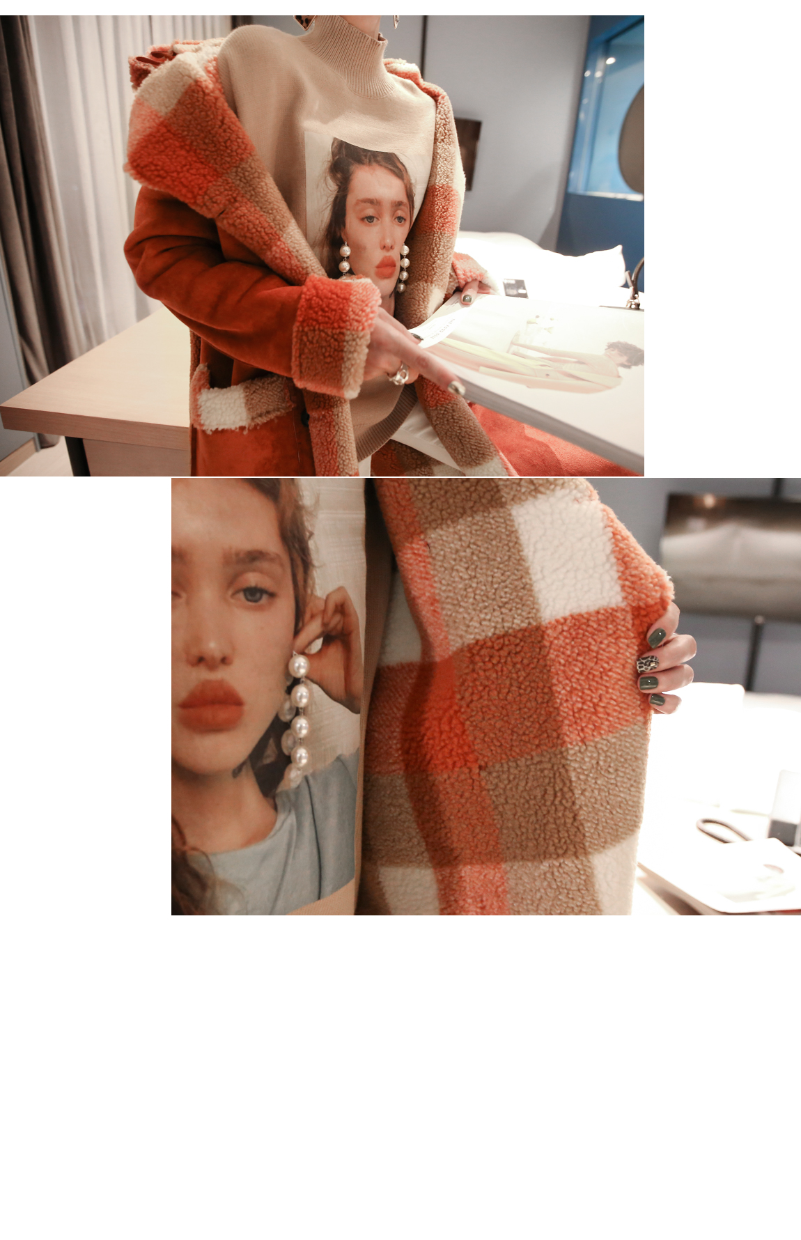 체크패턴의 양털 안감이 보온성을 높여줍니다