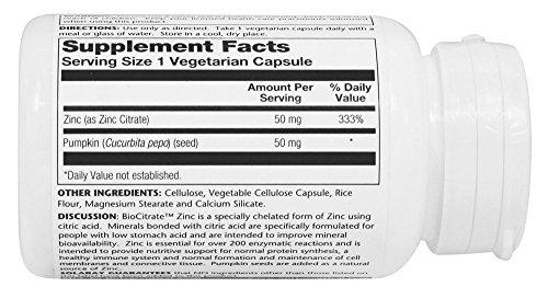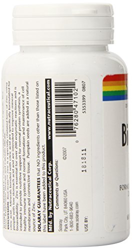 ReleaseDate : 2015-03-19 Studio : Solaray Publisher : Solaray Binding : Health and Beauty Product Description BioCitrate Zinc 50 mg from Solaray contains both zinc citrate as well as zinc from pumpkin seeds, for more than three times the daily recommended amount. 0