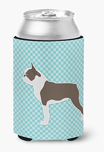 Caroline's Treasures Boston Terrier Checkerboard Blue Can or Bottle Hugger BB3744CC, Can Hugger, Multicolor