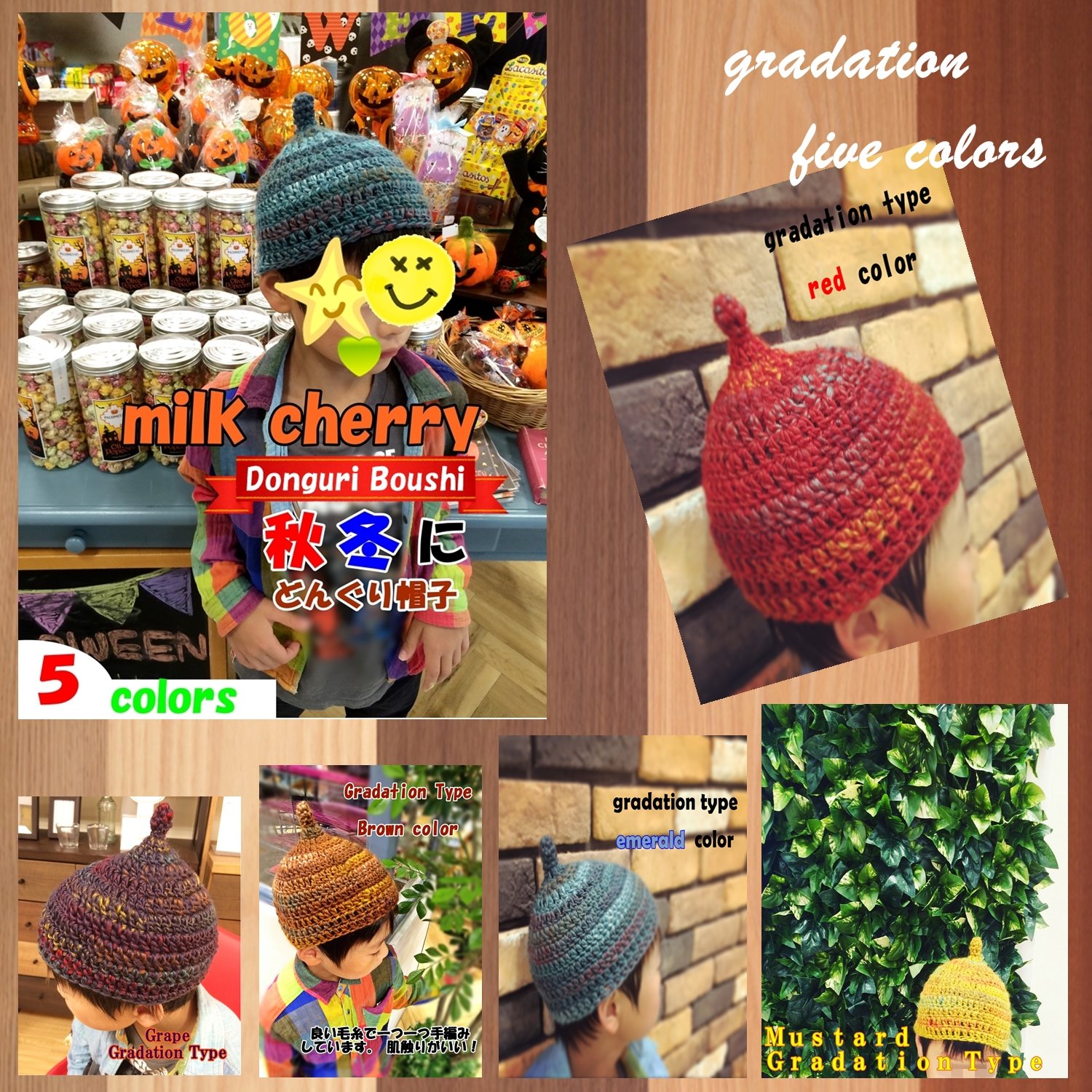 Autumn-Winter Acorn Hat Gradation Type Handmade COLOR: 5 Colors SIZE: S & M & L