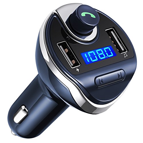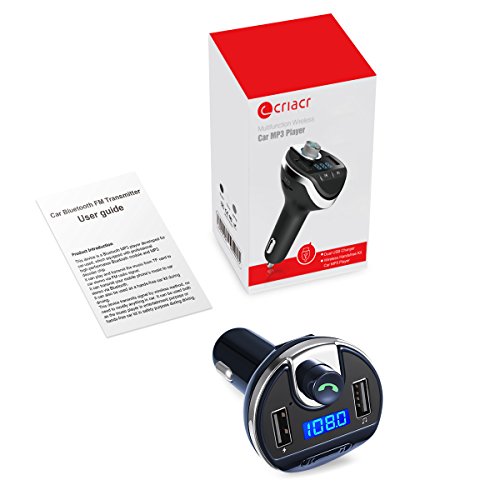 Criacr Bluetooth FM Transmitter, Wireless In-Car FM Transmitter Radio Adapter Car Kit, Universal Car Charger with Dual USB Charging Ports, Hands Free Calling for iPhone, Samsung, etc. (Blue)