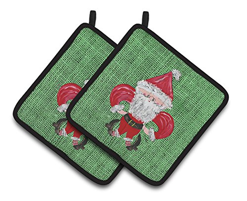 Caroline's Treasures Christmas Santa Fleur De Lis Pair of Pot Holders 8746PTHD, 7.5HX7.5W, Multicolor