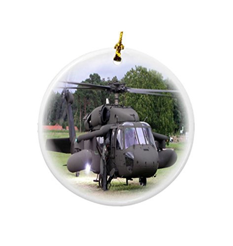 Rikki Knight Black Hawk Helicopter Design Round Porcelain Two-Sided Christmas Ornaments