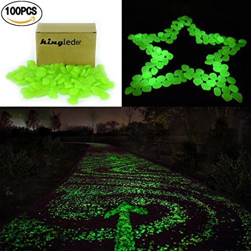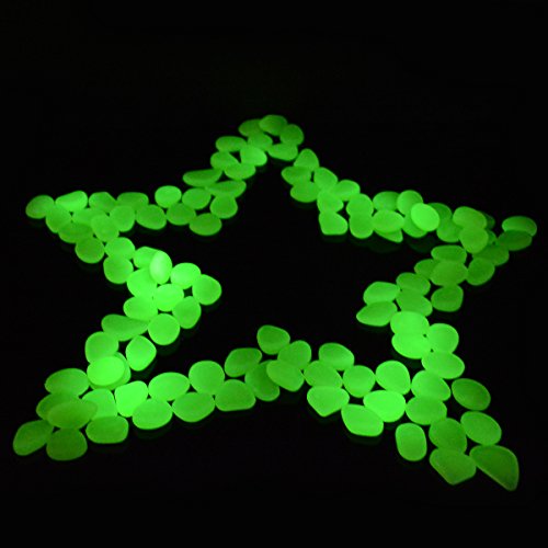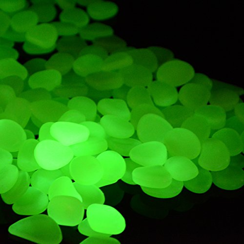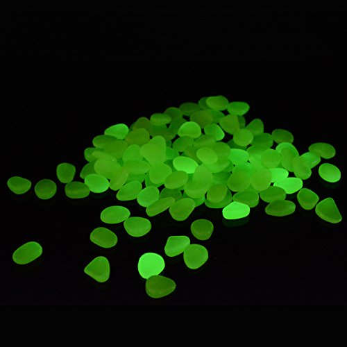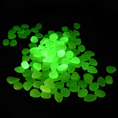 kingleder 100 Pcs Green Glow in the Dark Garden Stone Pebbles Gravel for Walkways Yard Fish Tank Aquarium Decor (100, Green)