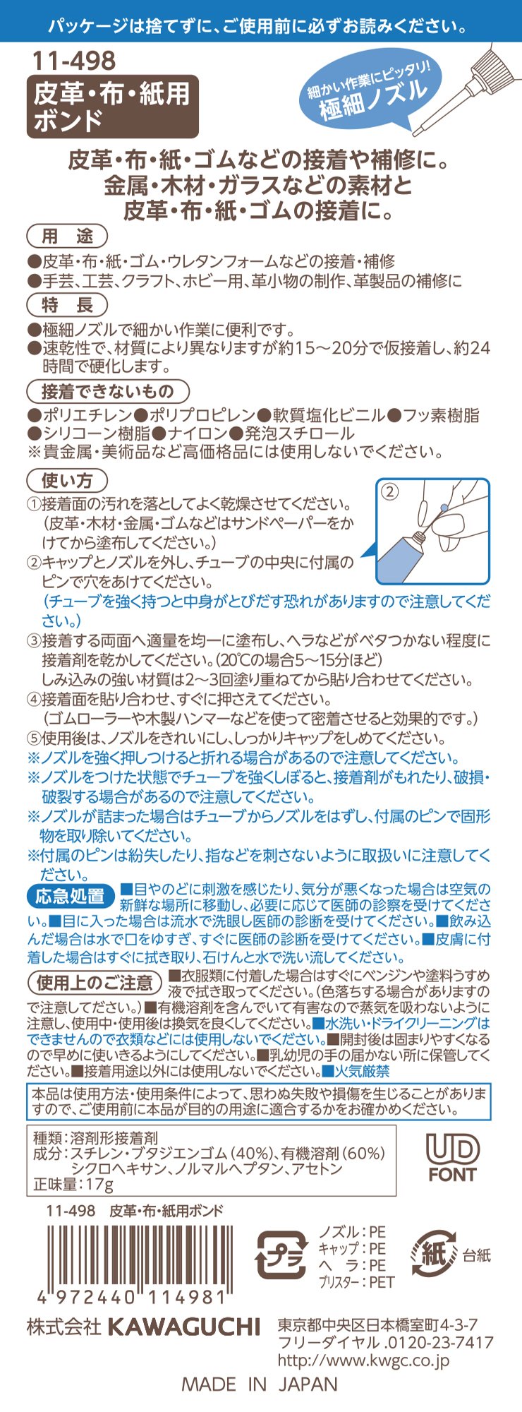 Bonds suitable for fine work such as leather adhesion, paper craft and so on.