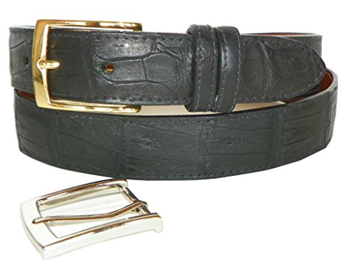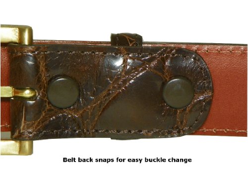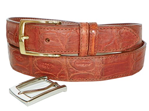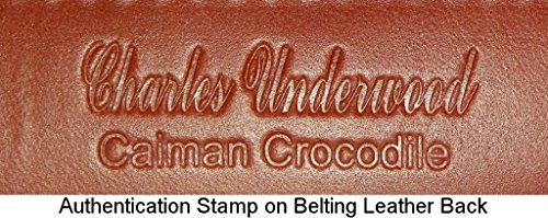 Binding : Apparel Product Description Genuine Caiman Crocodile Tail 1 3/16" (30 mm) Men's Belt with 2 Classic Buckles (1 Brass 1 Nickel). Rugged Matte-Finish Crocodile is laminated to tan belting leather back and stitched with skived, hand-stained edge. Snap closure accommodates easy change of buckles. Handcrafted in USA by Underwood family since 1978. Tissue wrapped Satin Pouch in Signature Gift Box. 0