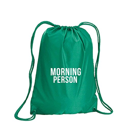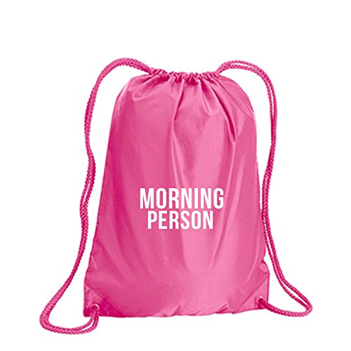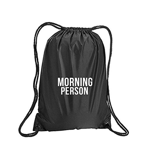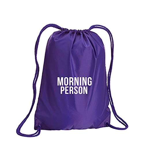Product Description This durable and stylish nylon tote features "MORNING PERSON" on a cinch pack tote with white ink. Bag comes in small and large sizes and is made of a durable 210 Denier nylon and has color-matched draw cords. Printed in the USA on an imported bag. 0