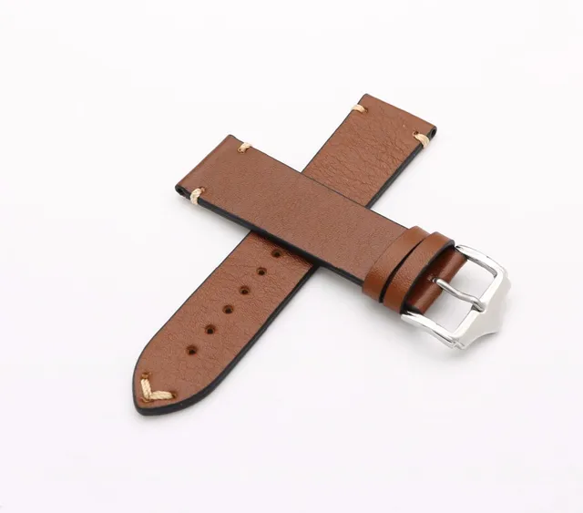 | [해외] CARLYWET 20 22 미리메터 남자 여성 수제 C 가죽 브라운 블랙 레드 블루 빈티지 손목 시계 밴드 스트랩 벨트 실버 광택 버클 |