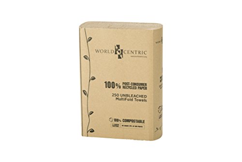 World Centric TW-PA-MF Compostable Unbleached Multifold Towels, 100% Post Consumer Recycled Paper (Pack of 4000)