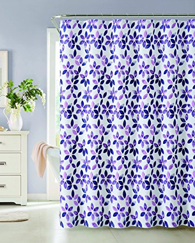 Flower Floral Pattern Cotton Fabric Shower Curtain (Purple Pink)