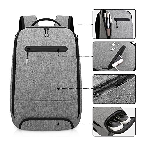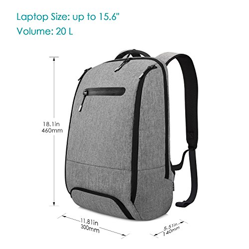 Studio : REYLEO Publisher : REYLEO Binding : Electronics Product Description Features - Two stylish side pockets provide dedicated space for your water bottle and umbrella. - The secure pockets next to your back can keep your wallet, and valuable things safer. - The back anti theft pockets and shoulder straps are thickly padded for comfortable carrying. - Useful backpack with multiple smart pockets keeps your various-sized devices organized well and easy to access. - Separate bottom shoe pocket separates your shoes from other items in the main pocket, keeping your stuff clean. - The reflective zipper pullers make you visible at night or under car light to avoid some accident, give you more protection. - The front sealed zippered pocket let you easily get your small accessories and prevent the accident water splashing wetting it. Specification Dimension: 11.81" x 5.51" x 18.11" (L x W x H) Laptop Slot Size: 10.2" x 1.1" x 15.3"(L x W x H) Fit Laptop Size: 15.6 inches Capacity: 20 Liters Material: Waterproof Polyester Color: Light Grey Waterproof Level: Water Splashing Package Includes 1 x Laptop Backpack Note: This backpack is water resistant and can only be used in Drizzle days, please avoid using it in heavy rain. Intimate After-sale Service: 24-month warranty for quality-related issues - Manufacturer warranty for 24 months from the date of purchase. Friendly customer service - Should there be any trouble, please let us know and our customer service is always standing by to help you out.