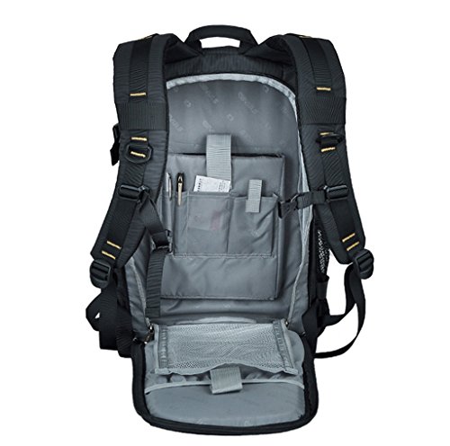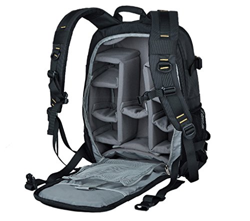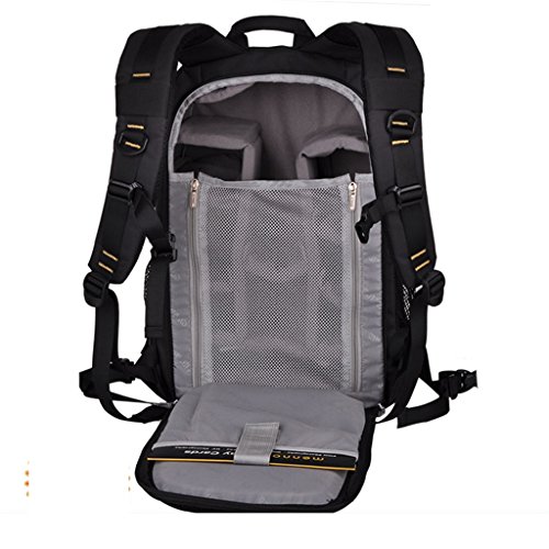 -. Feature : Backpack holds SLR camera body with attached zoom lens,laptop and additional accessories and clothes and iPad,pen, glasses, cd etc / Accessories pockets are retractable pocket cameras stent / A removable sponge sheet, can freely adjust the internal spatial structure / Increase air cushion gasket back and waist,breathable mesh and inner filling soft interlayer sponge,buffer shock absorption,reduce the pressure of body contact area,further enhance with comfort / On the P.R.Inciple of human body engineering design air exchange of bearing system,back pressure,create the most comfortable with experience