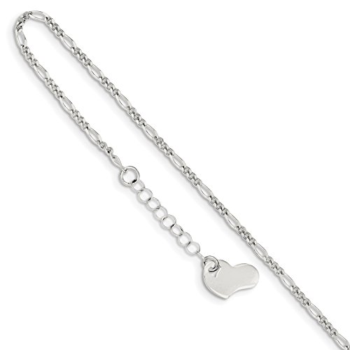 ICECARATS DESIGNER JEWELRY 925 STERLING SILVER HEART 1 INCH ADJUSTABLE CHAIN PLUS SIZE EXTENDER ANKLET FOR WOMEN ANKLE BEACH CHAIN BRACELET