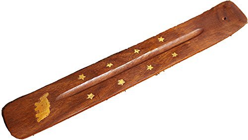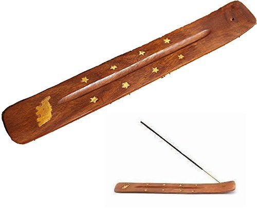 1pcs Wooden Incense Burner Flat Designs with Brass Inlay - Elephant, 10inch, Thanks Giving or Christmas Gift by Affaires W-40175
