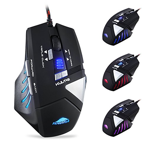 -. Title : Forestfish Wired Programmable PC Gaming Mice with 4000 DPI 8 Buttons 8 Breathing LED Light Optical Computer Game Mouse, Black