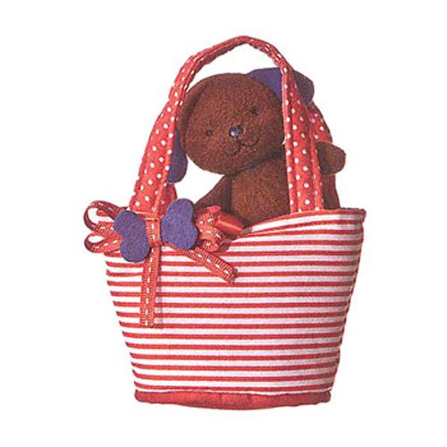 -. Title : Aurora World Plush - Mini Fancy Pals Pet Carrier - BROWN DOG in Red & White Carrier (5 inch)