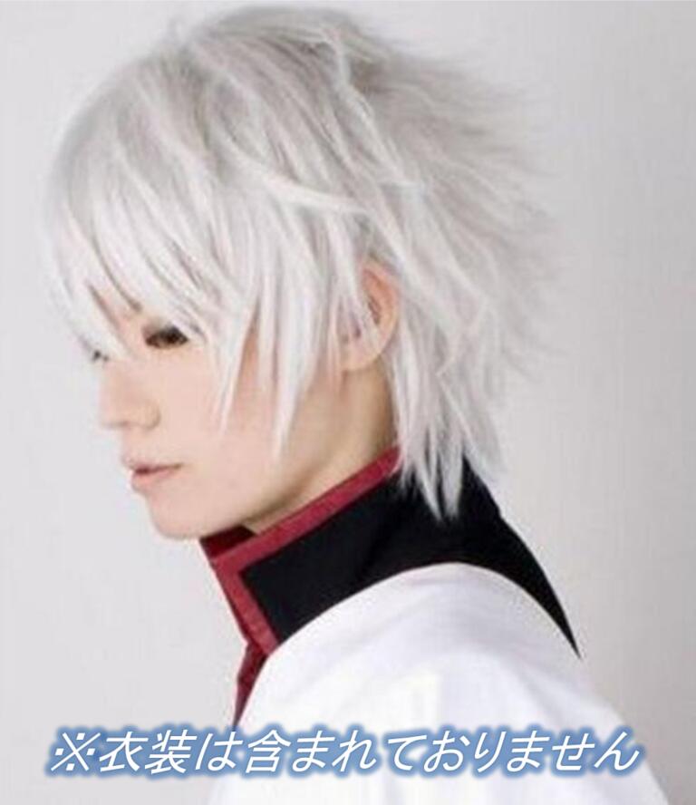 コスプレウィッグ 銀魂 坂田銀時 白髪 銀髪 耐熱 衣装 道具 小物 銀さん ウィッグネット さかたぎんときmmk-e47【1~2日発送】