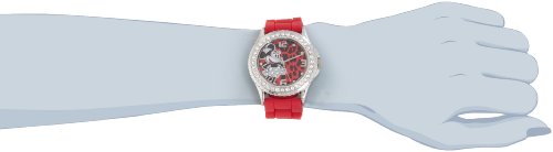 Red dial with cheetah print, arabic numeral display and Minnie mouse image