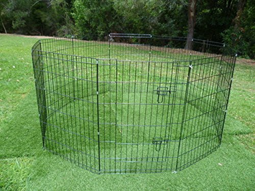 -. Feature : Can be used for training, as a kennel, or for other purposes, both indoors and outdoors. / These pens are built with 6-guage, all-steel wire frames for long lasting durability. This high tensile-strength wire is securely formed and welded into a tight mesh pattern, designed to keep your pet safe and secure. / These lightweight pens are fully collapsible. When folded flat, they measure less than 2 inches tall, and can be placed in the carry bag for storage or transport. / Pens are fully pre-assembled and can be setup or taken down in seconds; no tools are required. Simply place pen in the desired shape or configuration, and use the included sP.R.Ing-loaded clips to join the last panel. / Height: 36 inches, Pens are made up of 8 individual sides or panels, each measuring 24 inches long.