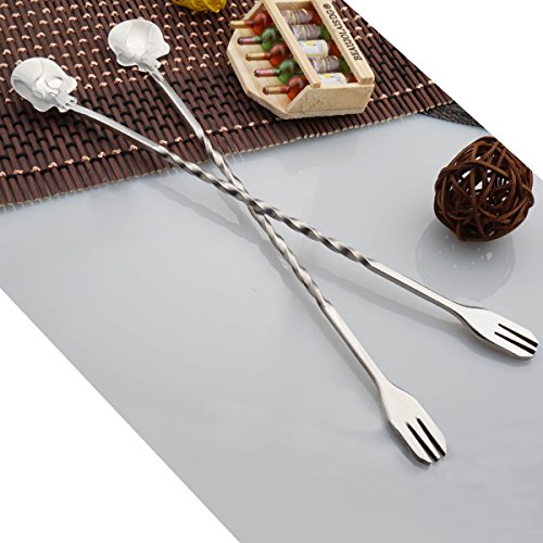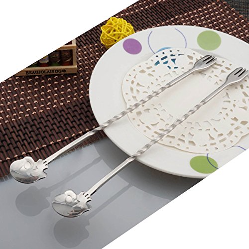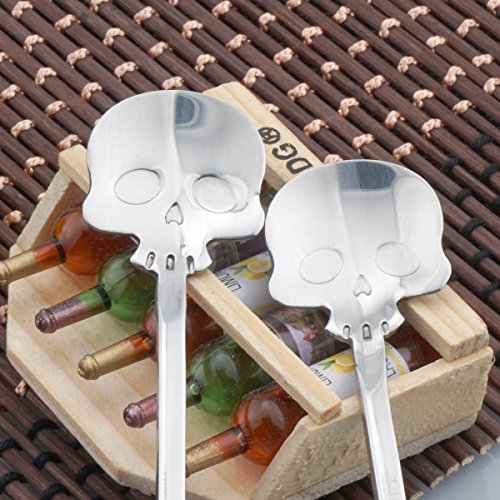 2 pcs Skull Mixing Spoon, SunBeter 9.8 Inches Stainless Steel Double Head Coffee Stirring Spoon