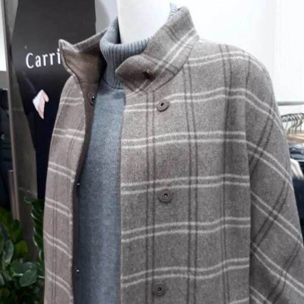 체크코트로어깨선에절개가들어가활동하기편한옷이다