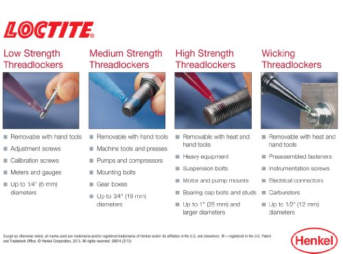 Loctite 272 Red High Temperature thread locker Bottle - 36 milliliter features a thread locker 272. It is high temperature red and withstands temperatures of up to 450 degrees F, for heavy duty applications.