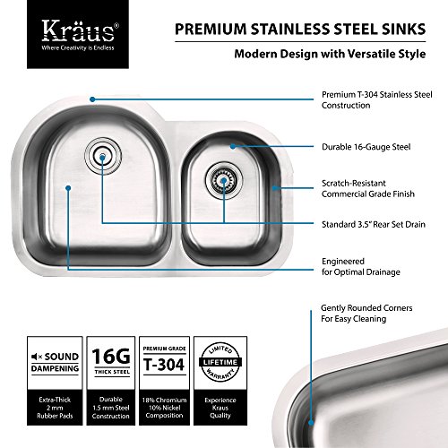 Kraus KBU26 32 inch Undermount 60/40 Double Bowl 16 gauge Stainless Steel Kitchen Sink