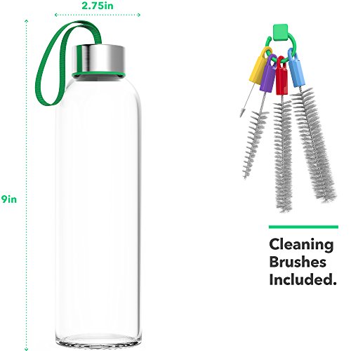 SAFE DRINKING BOTTLES - Made from clear soda lime glass, a naturally BPA free material, this glass water bottle set is safe to sip from again and again