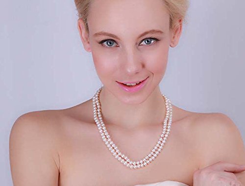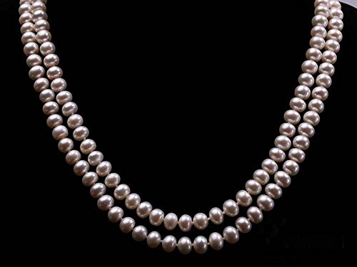 Description *Classic two-strand pearl necklace made with 7mm flatly round freshswater pearls.