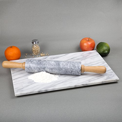 Creative Home 18" L Deluxe Natural Gray Marble Stone Rolling Pin with Wood Handles & Cradle
