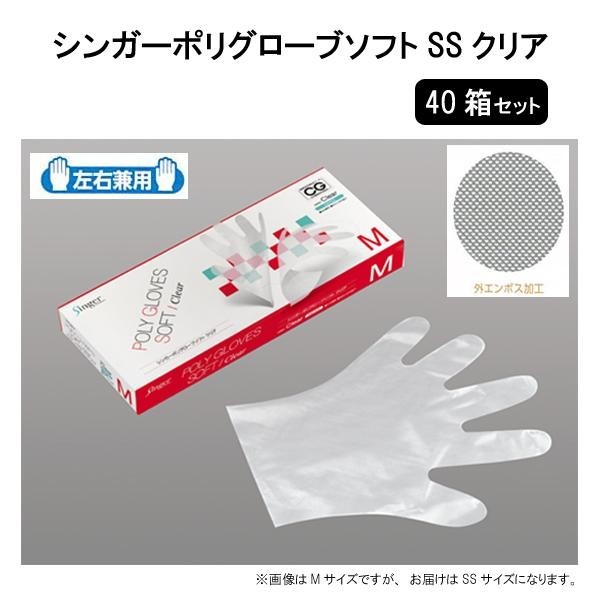 米飯がくっつきにくいエンボス加工。食品衛生法370号に適合しています。 製造国:ベトナム 素材・材質:ポリエチレンLD 仕様:外エンボス加工左右兼用厚み:0.035mm(中央値) セット内容:箱入り(100枚)×40箱 ※サプライヤー直送品 ご注文後3~4営業日後の出荷となります【商品名】宇都宮製作 シンガーポリグローブソフト SS クリア 箱入り(100枚)×40箱