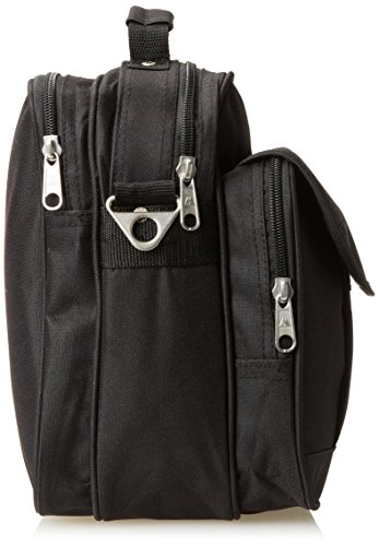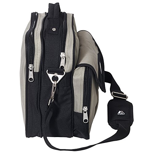 -. Feature : A large multipurpose utility bag / -Dual zippered compartments / -Large front zippered pocket with a protective flap / -Includes an internal organizer / -Adjustable shoulder strap
