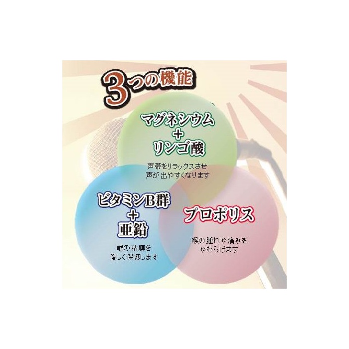 ■성분:비타민B군,아연,프로 폴리스,로얄 젤리 외에,화제의《오》-러버 리어도 배합한 목소리를 위한 all in one의 사프리(supplement)