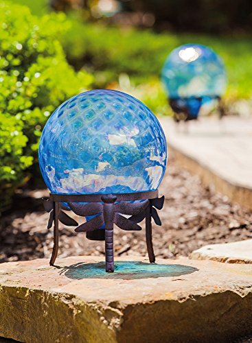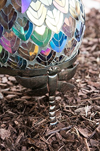 Evergreen Garden Dragonfly Adorned Metal Gazing Ball Stand - Ball Sold Separately - 8.5”W x 8.5”D x 6”H