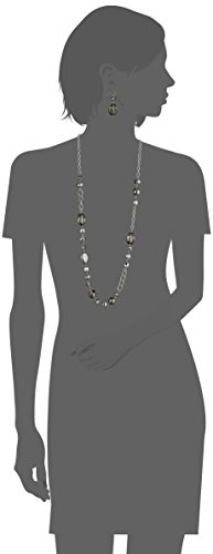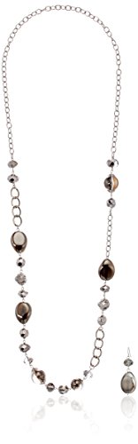Fashion Gray Beaded Station 40" Necklace and Earring Jewelry Set