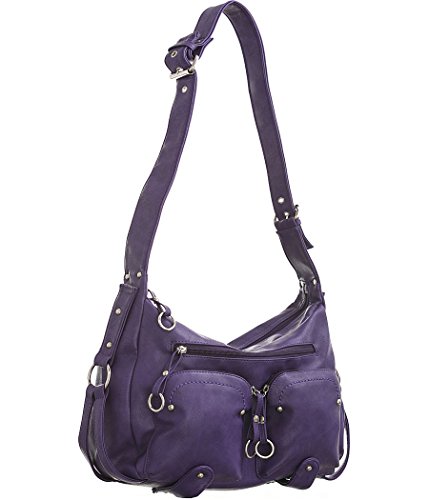 -. Feature : Top zipper closure - Measures approx. 9'' Height, 13'' Length, 4.25'' Width / Leatherette-fabric - Silver tone metal / 3 exterior pockets - Lining: fabric / 3 pockets inside - Strap: 21'' drop