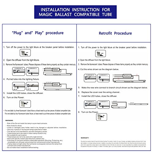 - LONG LASTING - With a lifetime of up to 50,000 hours, you can reduce the hassle of frequently replacing your light bulbs, Work with most of electronic ballast including Instant start ballast , Rapid start ballast ,Programmed ballast and emergency ballast.
