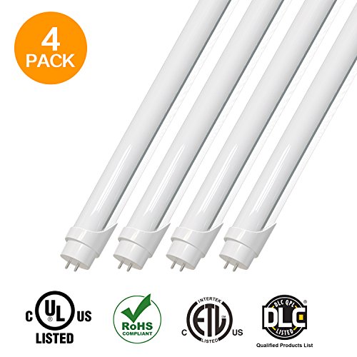 EVE 4Pack T8 LED Light Tube 4ft 18W (48W equivalent),2520 Lumens 3500K Soft White, Dual-End Powered, Frosted Cover,Fluorescent Light Bulbs Replacement,with or without ballast - internal driver