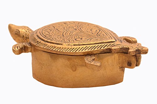 Purpledip Rare Collection Tortoise Turtle Shaped Sindoor Kumkum Box: Brass Dabbi For Home Temple Mandir (10917)