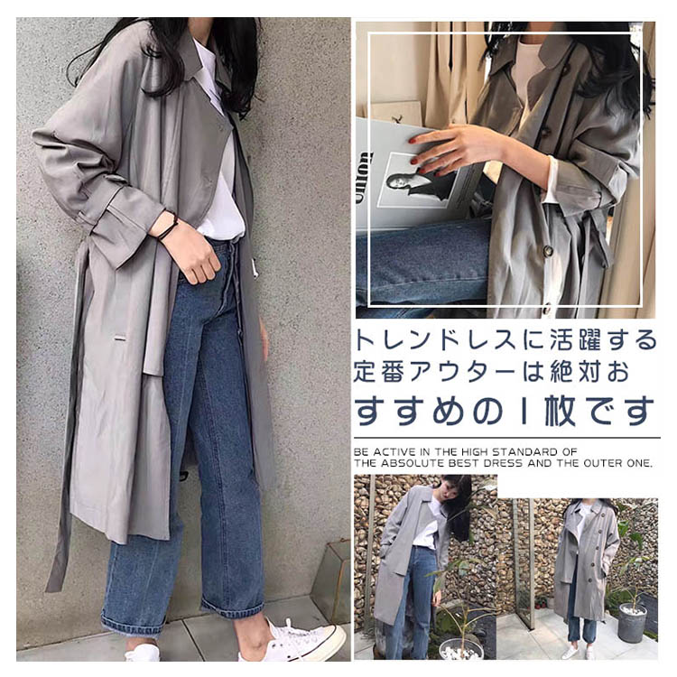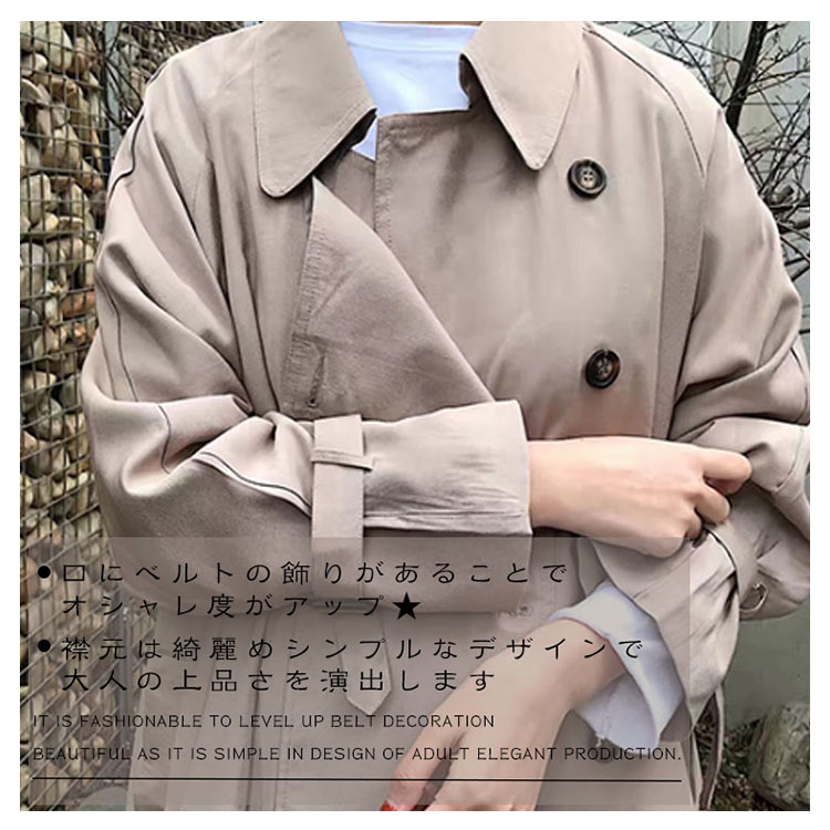 | シンプルな中にもトラッドなムード感を感じさせるトレンチコートです。スカートやパンツとのバランスが取りやすく、全体的にコンパクトにまとまるので、理想の美バランスが完成!トレンドレスに活躍する定番アウターは絶対おすすめの1枚です。 | |