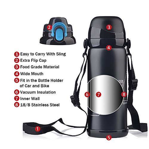 PRACTICAL, ANTI SHAKE & LEAKPROOF - Double sealing rubber ring inside and outside double screw cap make the flask completely watertight even if shaken violently up to 500 times. The 27oz bottles come with double Lids for hot or cold beverages. You can use the lid as a cup, the cover made of food-grade PP material, it's safe and handiness.