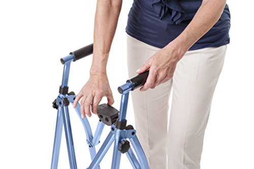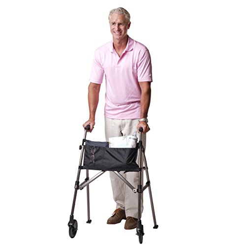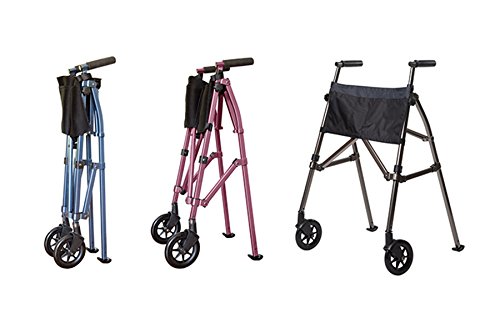 No more struggling to fold and fit an awkward and large flattened walker into a car or off to the side in a restaurant. A Metro Walker folds/collapses into a super compact 6 x 4 x 32 inch bundle (think of a large umbrella) that can fit in an aircraft overhead bin or disappear into a corner. Unfolding or opening the walker is as simple as spreading the two handles and pushing down on the locking mechanism.