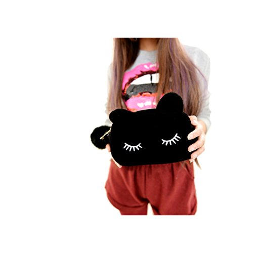 - Title : Samaz Cute Cat Suede Fabric Handbag Evening Bag Clutch Bags Coin Purse Makeup Cosmetic Bag Pouch (Black)