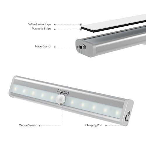 Aglaia Closet Light 10 LEDs with Motion Sensor, Stick on Lights with Magnetic Strip, Rechargeable