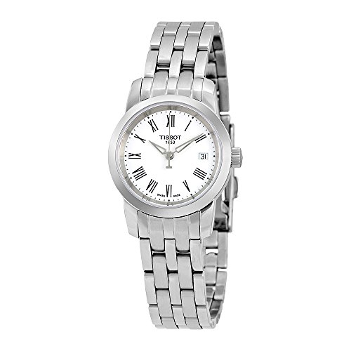 -. Binding : Watch -. Brand : Tissot -. Color : white -. Department : womens -. EAN : 7611608240519 -. Feature : Silver-tone watch featuring white dial with Roman numeral indices and date window at 3 o'clock / 28 mm stainless steel case with antireflective sapphire dial window / Quartz movement with analog display / Five-link stainless steel bracelet featuring fold-over clasp with safety / Water resistant to 30 m (99 ft): In general, withstands splashes or brief immersion in water, but not suitable for swimming. -. IsAdultProduct : 0 -. Label : Tissot -. Manufacturer : Tissot -. Model : TIST0332101101300 -. MPN : TIST0332101101300 -. PackageQuantity : 1 -. PartNumber : TIST0332101101300 -. ProductGroup : Watch -. ProductTypeName : WATCH -. Publisher : Tissot -. ReleaseDate : 2014-09-30 -. Studio : Tissot -. Title : Tissot Women's TIST0332101101300 Dream Stainless Steel Watch