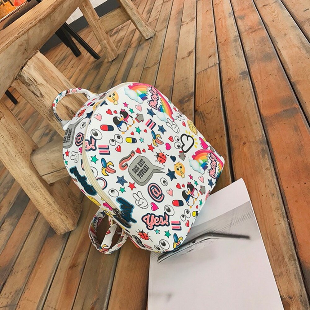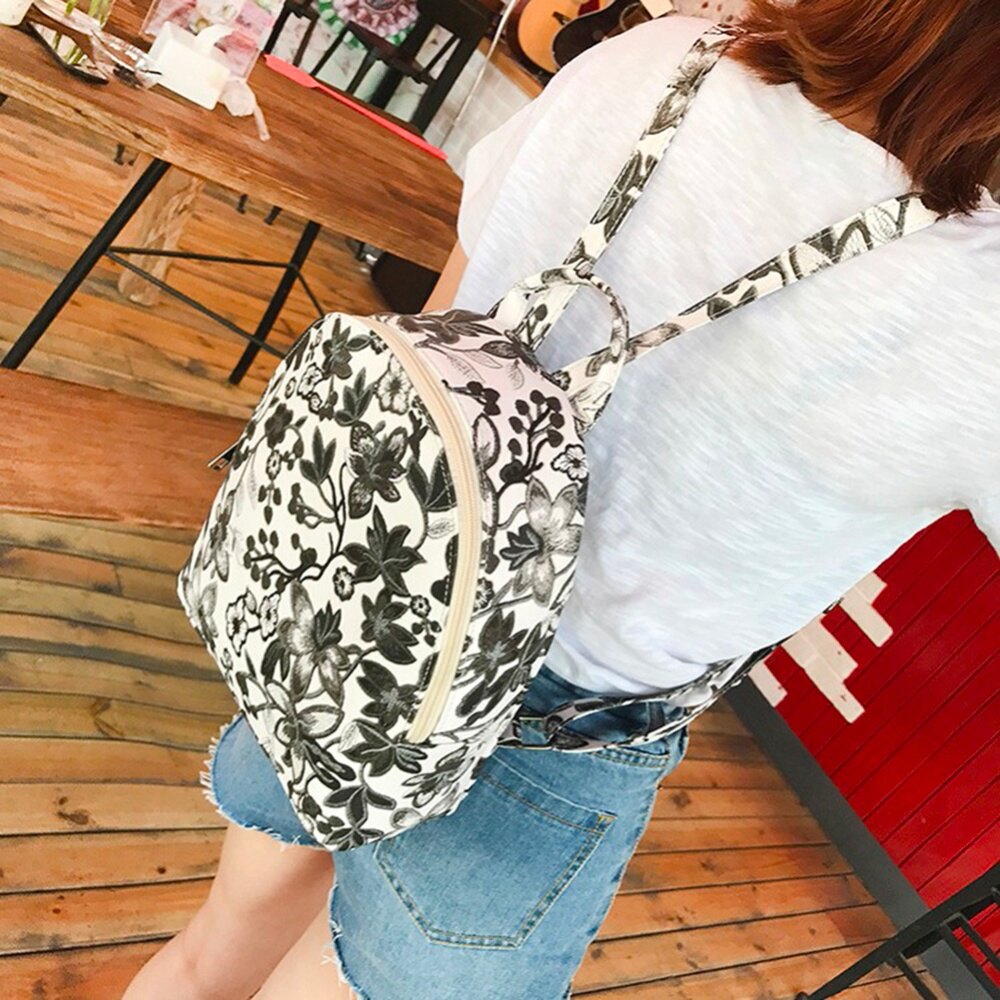 2018 New Fashion Summer Women PU Leather Floral Printed Backpack Girls School Bag