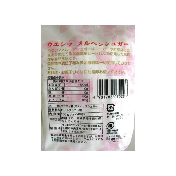 원본상품명: ウエシマ メルヘンシュガ 4g×40本×6袋