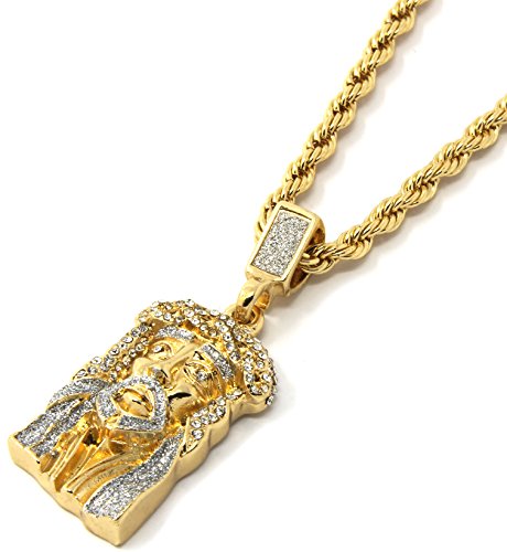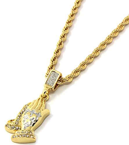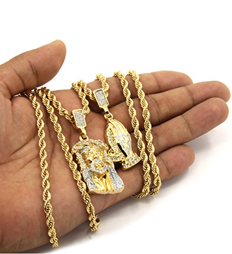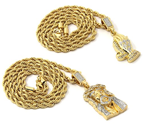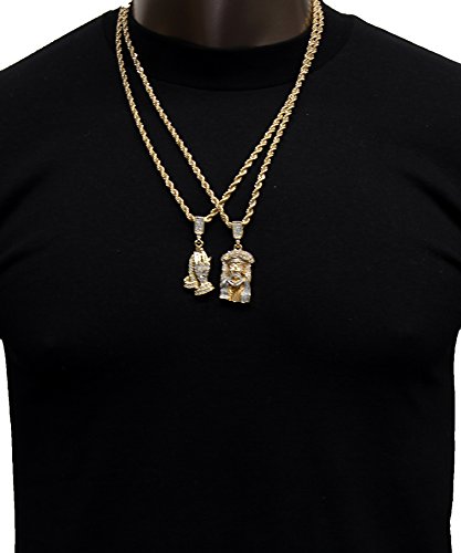 -. Binding : Jewelry -. Brand : Jewel Town -. Department : Mens -. Feature : Mens Crowned Jesus & Prayer Hands Pendant / Chain Length : 24" Inches Long x 4mm Thin / Made From Fine Brass Metal & Plated With Gold Tone Plating / You Will Receive One Chain & One Pendant As A Set (As Seen On Image) / Sold & Shipped By Jewel Town -. Label : Jewel Town -. Manufacturer : Jewel Town -. Model : D421 -. MPN : D421 -. PartNumber : D421 -. ProductGroup : Jewelry -. ProductTypeName : FASHIONNECKLACEBRACELETANKLET -. Publisher : Jewel Town -. Studio : Jewel Town -. Title : Mens Gold Two Piece Jesus & Prayer Hand Set Pendant Hip Hop 24" Rope Chain D421